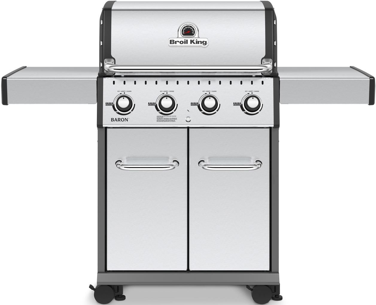 The Baron™ series offers both power and performance in a variety of sizes to suit all types of grillers. At the heart of the Baron series is the legendary Broil King®cooking system: heavy-duty cast iron cooking grids, stainless steel Flav-R-Wave™technology, and powerful stainless steel Dual-Tube™ burners. Easy to maintain, with urban styling and a performance package that rivals any other grill, the Baron series is in a class by itself.