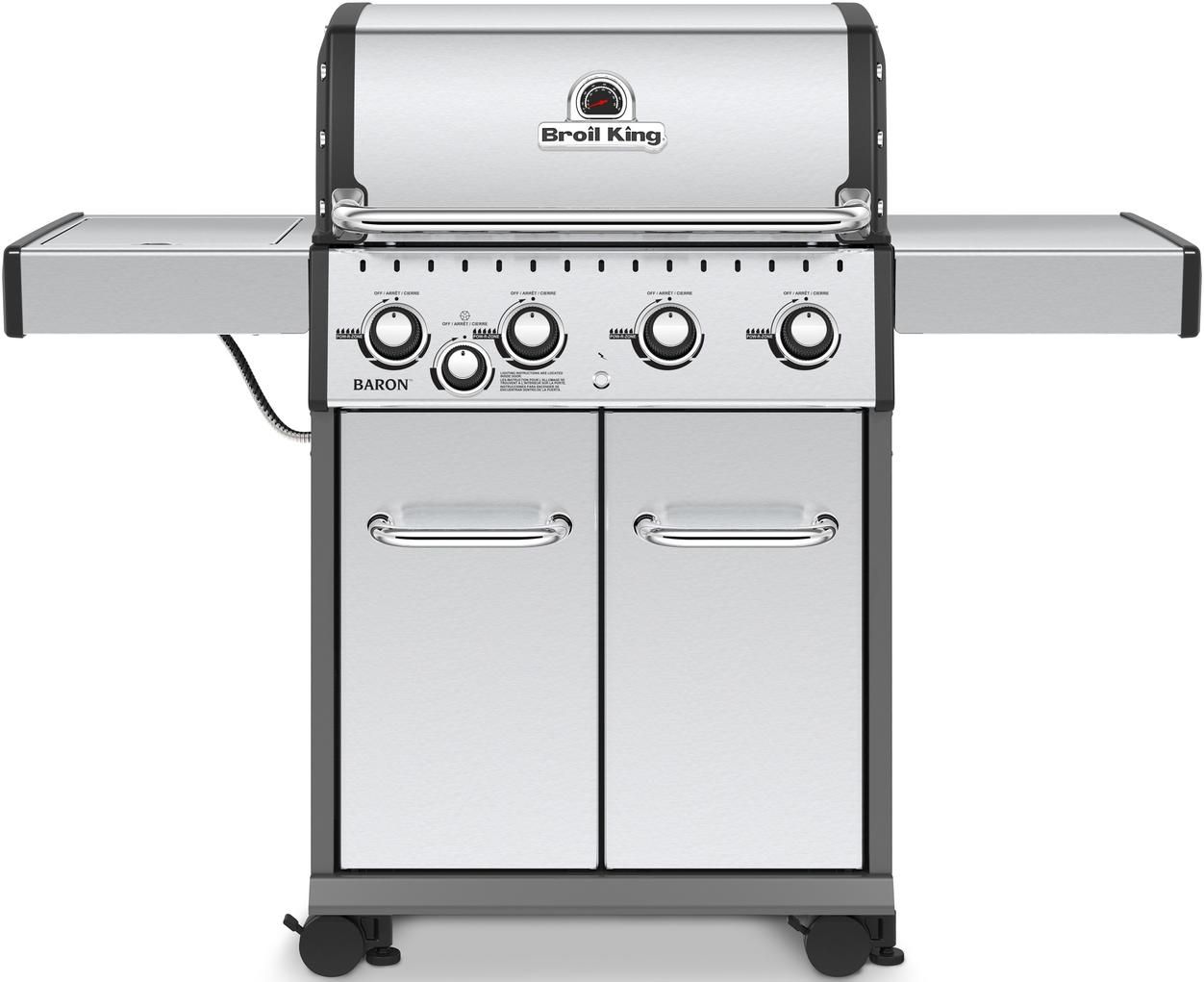 The Baron™ series offers both power and performance in a variety of sizes to suit all types of grillers. At the heart of the Baron series is the legendary Broil King®cooking system: heavy-duty cast iron cooking grids, stainless steel Flav-R-Wave™technology, and powerful stainless steel Dual-Tube™ burners. Easy to maintain, with urban styling and a performance package that rivals any other grill, the Baron series is in a class by itself.