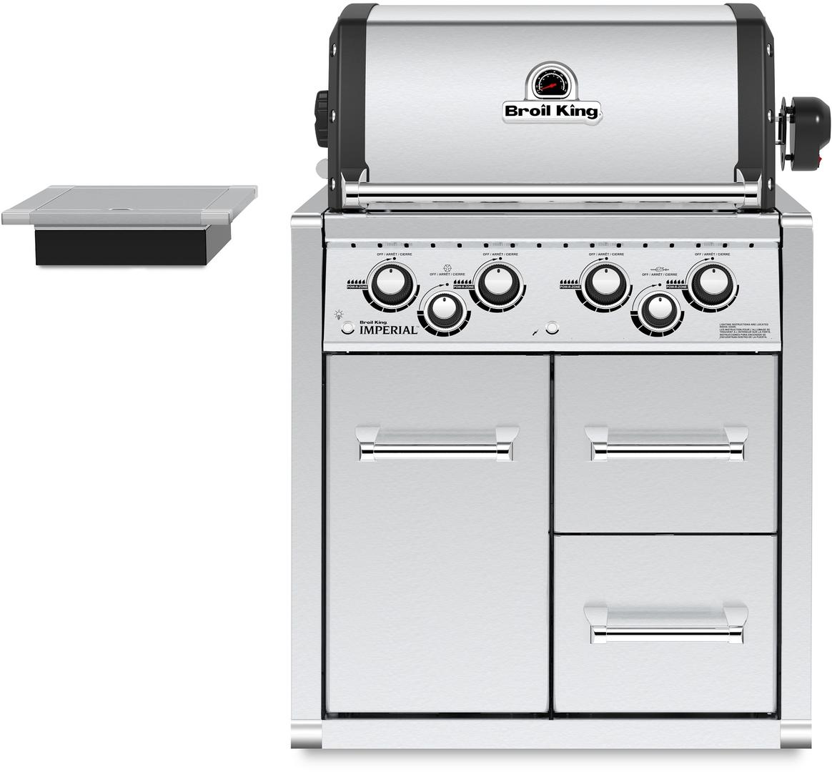 The Broil King® Imperial™ 490 Built-in Cabinet features 500 sq. in of primary cooking surface and includes 4 stainless steel Dual-Tube™ burners, 4 professional cast stainless steel cooking grids, warming rack, stainless steel Flav-R-Wave™ cooking system, electronic igniter, oven lights, illuminated control knobs and stainless steel ignition switch, stainless steel door and drawers.Read More