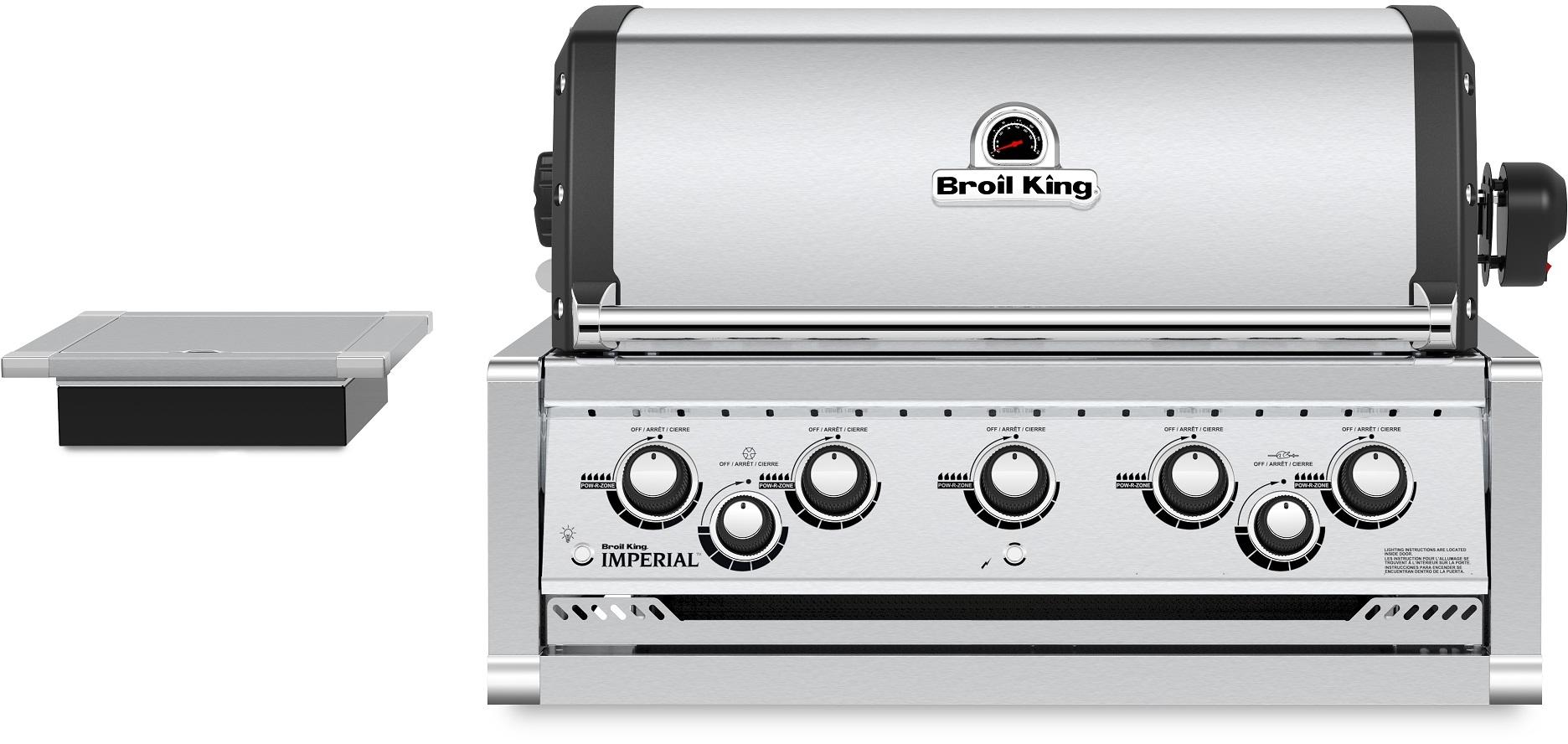 The Broil King® Imperial™ 590 Built-In features 625 sq. in of primary cooking surface and includes 5 stainless steel Dual-Tube™ burners, 5 professional cast stainless steel cooking grids, warming rack, stainless steel Flav-R-Wave™ cooking system, electronic igniter, oven lights, illuminated control knobs and stainless steel ignition switch.Read More