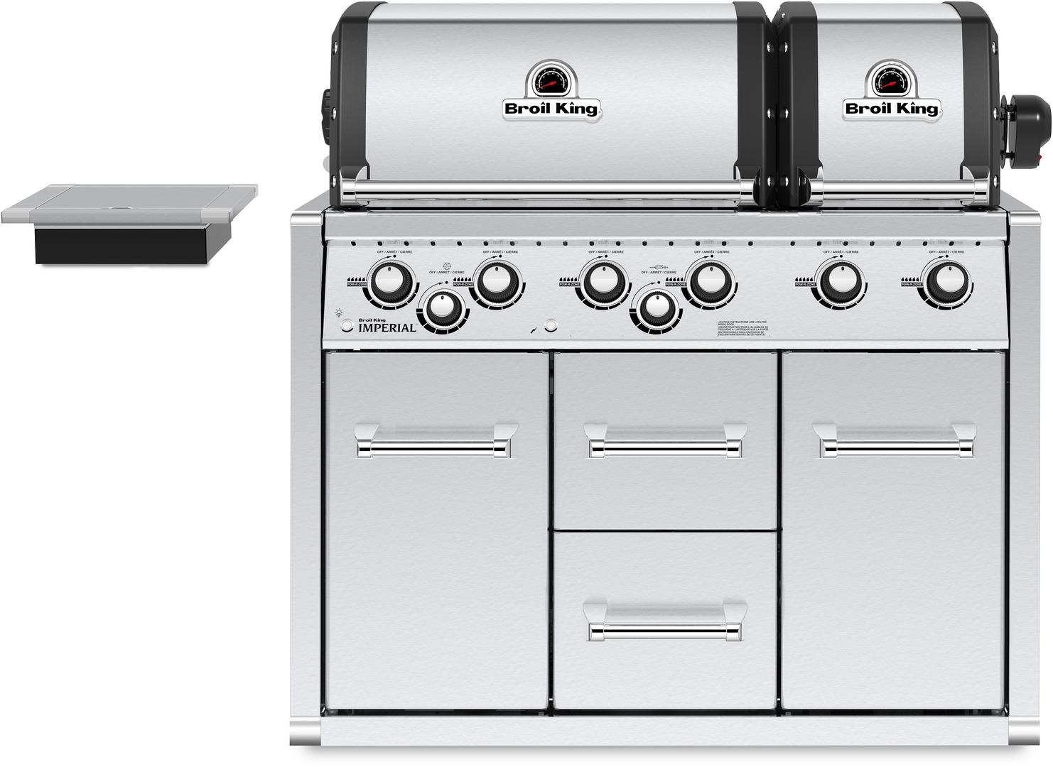 The Broil King® Imperial™ XLS Built-in Cabinet features two totally independent ovens with a total of 750 sq. in of primary cooking surface and includes 6 stainless steel Dual-Tube™ burners, 6 professional cast stainless steel cooking grids, warming rack, stainless steel Flav-R-Wave™ cooking system, and two electronic igniters, oven lights, illuminated control knobs and stainless steel ignition switch, stainless steel doors and drawers.Read More
