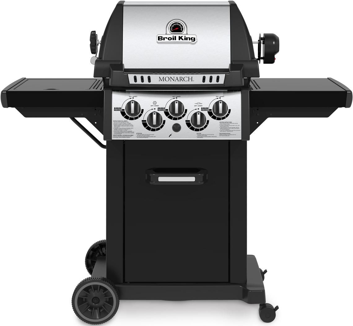 The re-designed Monarch™ series is sure to turn heads. Broil King® has grills for every budget yet the exceptional quality always remains the same. This is what sets the Monarch™ series apart from the rest. Each grill features a rust proof cast aluminum cookbox, powerful Dual-Tube™ burners and durable stainless steel components. The new Monarch™ comes with stylish chrome painted steel drop-down side shelves with integrated tool hooks and a door designed for easy access to the propane tank. These quality, stylish grills are made for performance, dependability and great value.