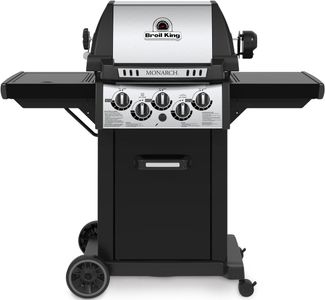 The Monarch™ 390 features 330 sq. in. primary cooking surface and includes 3 stainless steel Dual-Tube™ burners, reversible heavy-duty cast iron cooking grids, stainless steel Flav-R-Wave™ cooking system, and electronic ignition. The Monarch™ 390 features painted steel drop-down side shelves and enclosed cabinet base.Read More