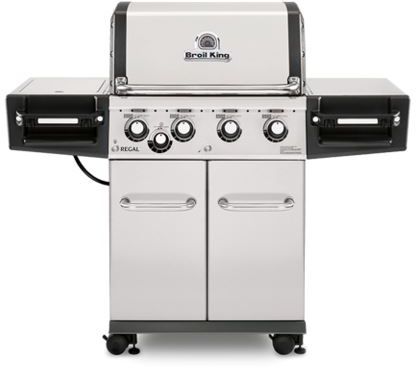 Broil King® Regal™ S440 PRO Series 24.8" Stainless Steel Freestanding Grill with illuminated control knobs and stainless steel side shelvesRead More