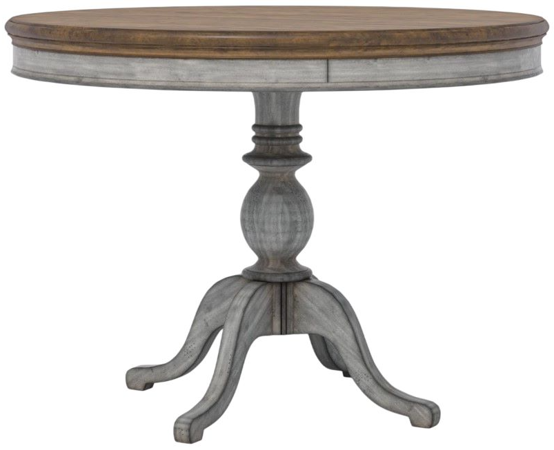 Shabby chic design with a bit of vintage. The Plymouth round counter table boasts a shabby chic design with contrasting wood finishes. With an overall graywash finish accented by a dark tabletop, Plymouth is ideal for those who like a bit of vintage design in their modern lives.Read More
