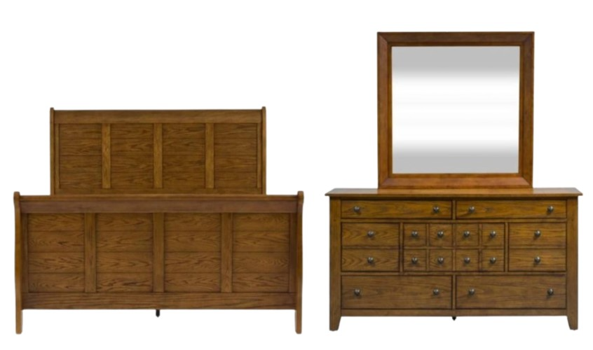 Complete your rustic American look with the Grandpa’s Cabin queen sleigh bed, dresser and mirror. Crafted of rubberwood solids and oak veneers, this kit features complete case dust proofing to protect your contents, French and English dovetail drawer construction, full extension and fully stained interior drawers.Read More