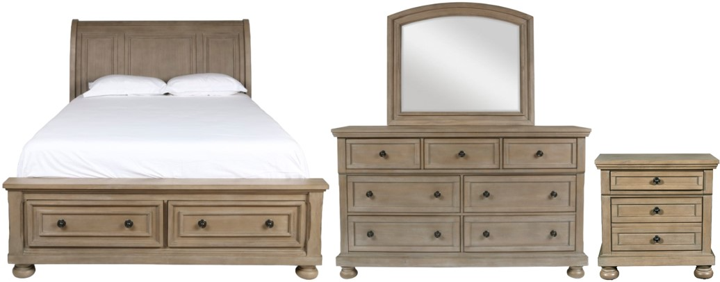 The Allegra california king bedroom set is sophisticated pale pewter finish is the perfect blend of durability, style, and clarity, making it an essential complement to your bedroom furniture. Expertly crafted from solid Mindi wood, engineered woods, and wood veneers.Read More
