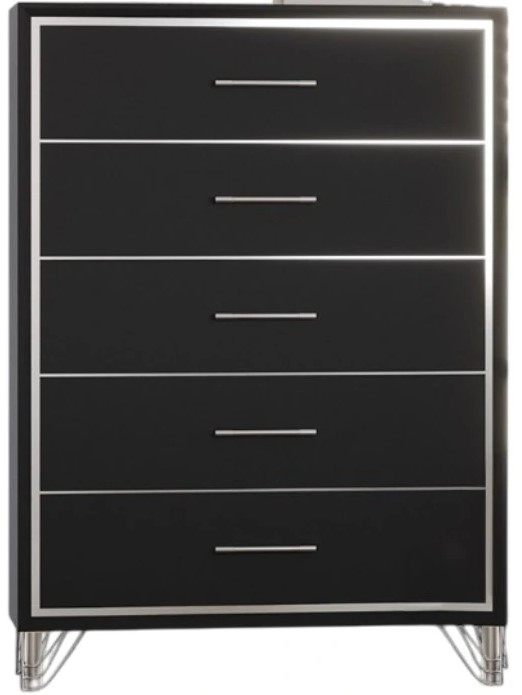 The Ava collection exudes modern elegance and refined luxury. Featuring a panel bed, 2 drawer nightstand, 7 drawer dresser, mirror, and 5 drawer chest, each piece is crafted from engineered wood with eco-friendly black laminate.Read More
