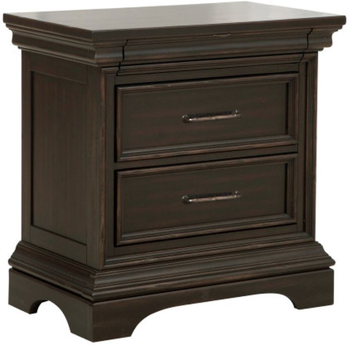 The traditional profile of this attractive nightstand marries prominent tiered molding, bracket-style feet, and smart storage for the perfect bedside accent. Two roomy drawers are tucked behind pipe-style hardware, providing ample room for books, mobile devices, a sleep mask, and more to suit your bedtime routines.Read More