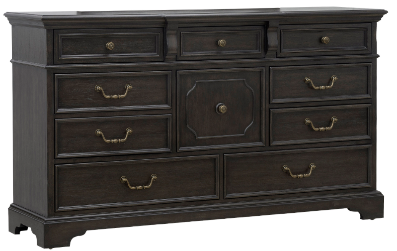 The Hickory Creek brown velvet 10-drawer dresser features a timeless silhouette, offering drawers in varying sizes for ample storage with refined organization. The rich Brown Velvet wood finish enhances the natural beauty and depth of the split heart cathedral hickory veneers.Read More
