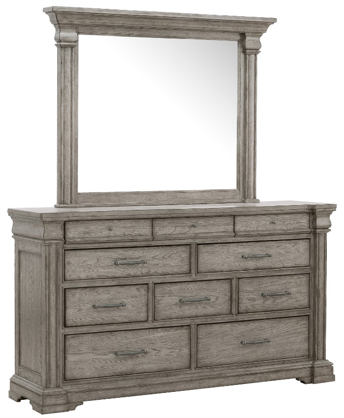 The Madison Ridge Heritage Taupe Dresser and Mirror is a sophisticated and elegant addition to any bedroom. The set features a dresser and a matching mirror, both finished in a refined heritage taupe hue that brings a touch of warmth and classic charm to your decor.Read More