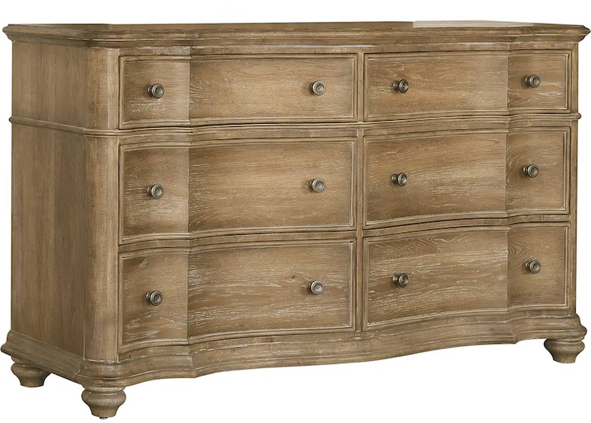 Refined and functional, the Pulaski™ Weston Hills flax seed dresser offers timeless storage with elegant detailing. Featuring six shaped drawers, a decorative walnut inlay top, and a warm Flax Seed finish on cathedral hickory veneers, this dresser brings classic charm and smart design to your bedroom.Read More